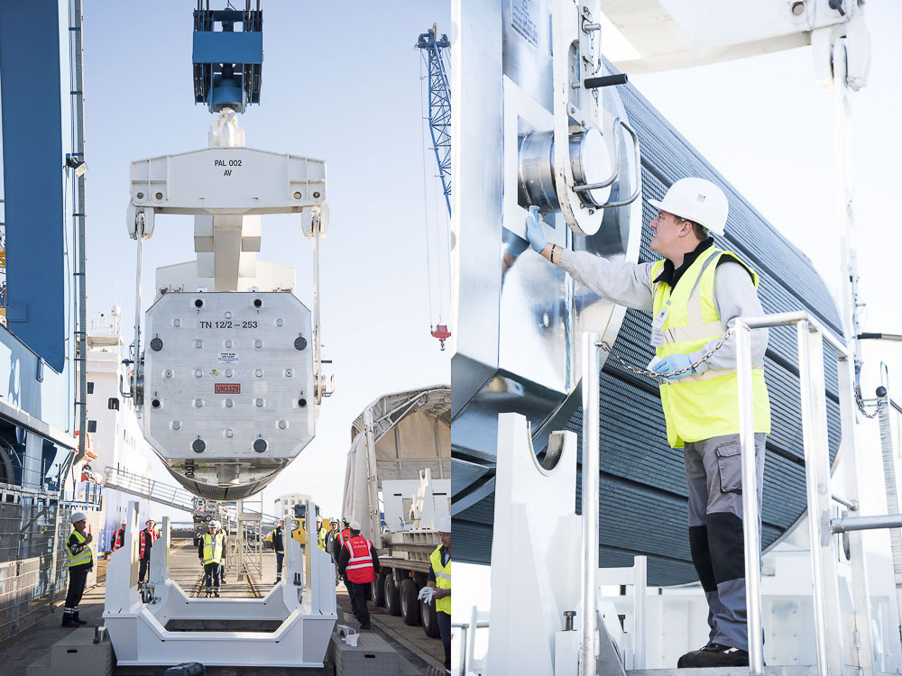 Le MOX est un combustible nucléaire produit par Orano et composé en partie de plutonium. Plusieurs tonnes sont partis de Cherbourg (Manche) à destination d'une centrale japonaise en juillet 2017. Ce reportage illustre l'embarquement du combustible dans le navire spécialisé pour ce type de transport.